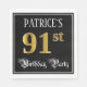 Ce design élégant et opulent de serviette en papier sur le thème de l'anniversaire comporte un nom personnalisable et le message "91st Birthday Party". Le grand numéro "91st" a un motif de couleur d'inspiration or imitation/fausse, les mots "fête d'anniversaire" sont dans un texte de style script luxueux, et l'arrière - plan est coloré noir par défaut (bien qu'il puisse être customisé). Des serviettes en papier élégantes et luxueuses comme celle-ci pourraient être utiles lors d’une célébration d’anniversaire pour célébrer le quatre-vingt-dix-unième anniversaire de quelqu’un. [~Z0000565]
