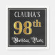 Cette conception de serviette en papier à thème d'anniversaire fantaisie et ornée comporte un nom personnalisé et le message "98th Birthday Party". Le grand numéro "98th" a un motif de coloriage d'inspiration or imitation/fausse, et les mots "Birthday Party" sont dans un texte de style script luxueux. L'arrière - plan est coloré en noir par défaut (bien qu'il puisse être customisé). Des serviettes en papier élégantes et opulentes comme celle-ci pourraient être utilisées lors d’une fête d’anniversaire organisée pour célébrer le 98e anniversaire de quelqu’un. [~Z0000565]