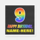 Cette serviette en papier colorée, amusante et joyeuse à thème d'anniversaire comporte un grand nombre de "9" et le message "HAPPY BANTHDAY", tous deux ayant un dégradé arc-en-ciel de couleur motif inspiré, ainsi qu'un nom de destinataire modifiable jaune gras. L'arrière - plan est noir de couleur. Des serviettes en papier sur le thème de l’anniversaire comme celle-ci pourraient être utilisées pour célébrer le 9e anniversaire de quelqu’un. [~Z0000476]