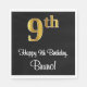 Cette conception sophistiquée, élégante et luxueuse de serviette d'anniversaire comporte un grand numéro ordinal "9th" ayant une apparence fausse/imitation or, en plus du message de voeux d'anniversaire "Happy 9th Birthday," et un nom personnalisé dans une police de style script. L'arrière - plan est noir de couleur. Des serviettes en papier à thème d’anniversaire sophistiquées comme celle-ci pourraient être utilisées à une fête d’anniversaire pour célébrer le neuvième anniversaire de quelqu’un. [~Z0000516]