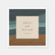 Serviettes mariages modernes avec vos noms et date mariage sur un arrière - plan côtier abstrait.