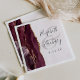 Ces élégantes serviettes mariages modernes présentent un design d'aquarelle bordeaux orné d'une parties scintillant en faux or. Customisez facilement le texte gris fusain sur un arrière - plan rose vif, avec les noms de la mariée et du marié en calligraphie manuscrite sur une grande et pâle esperluette bordeaux.