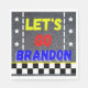 Ce design a des lettres lumineuses avec le chant "Let's Go Brandon" sur le trottoir avec à damiers carrés blancs et noirs pour représenter une ligne d'arrivée Nascar.