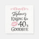 Anniversaire Drôle Embrasser Une Décennie Adieu Papier Personnalisé Paquet De Fête. Célébrez un anniversaire qui débute une nouvelle décennie avec ces serviettes de fête amusantes avec un design de typographie moderne de l'âge modifiable pour le dicton NOM'S KISSING HER "DECENNIE" GOODBYE (l'échantillon montre 40s pour un 50e anniversaire). CHANGEMENTS : Le style de police de texte personnalisé, la couleur, la taille et le placement ainsi que les graphiques et les couleurs arrière - plans peuvent être modifiés pour être coordonnés avec les couleurs de votre thème de soirée (en rose et noir). OPTIONS NAPKIN : L'échantillon est présenté dans la taille du Cocktail de 4,75 x 4,75 pouces sur le blanc—d'autres tailles et couleurs papier serviette sont disponibles sur la page de commande. ASSISTANCE : Pour obtenir de l'aide sur la modification ou la personnalisation de la conception, le changement de couleur, le redimensionnement, le transfert de la conception à un autre produit ou pour coordonner des éléments, contactez le concepteur AVANT DE COMMANDER via Zazzle Conversation ou makeitaboutyoustore@gmail.com.