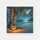 Un ananas lumineux sculpté comme un jack-o-lanterne se trouve sur une plage tropicale éclairée par la lune sous des palmiers