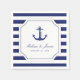 Parfaites pour votre réception de mariage à thème nautique, ces serviettes en papier sont dotées d'une ancre bleu marine classique avec une corde et d'un arrière - plan rayé bleu et blanc. Personnalisez les noms de la mariée et du marié avec la date du mariage.