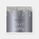 Une serviette pour une fête d'anniversaire girly et glamour de 21ème (ou tout âge). Un faux arrière - plan métallique à l'apparence argentée avec d'élégantes gouttes de parties scintillant faux argent, la peinture goutte à goutte. Personnalisez et ajoutez un nom et 21 ans
