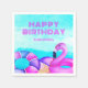 Serviettes de fête d'anniversaire. Bagues de flotteurs flamands roses à l'aquarelle mignonne. Facile à changer de nom. Design amusant pour la fête.