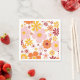 Serviettes d'anniversaire super d'inspiration rétro avec fleurs de style années 70 et couleurs boho.