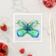 Illustration d'aquarelle en bleu et vert pour papillon blanc. Art original.