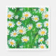 Serviettes en papier dans une aquarelle motif de marguerites blanches aux centres jaunes dorés, sur un arrière - plan vert pâle