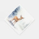 Un bébé aquarelle pèle dans les flocons de neige et les pins bleus.