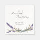 Belles serviettes en papier d'anniversaire modernes et élégantes pour adultes conçues avec des fleurs de lavande aquarelle peintes à la main. Personnalisable pour n'importe quel jalon d'anniversaire.