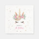 Serviettes de fête d'anniversaire de la licorne magique. Le design présente un superbe visage de licorne aquarelle aux accents de parties scintillant en faux or, encadré de délicats confettis. Ajoutez simplement nom et âge.