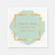 Magnifique élégant mariage personnalisé serviettes en papier jetable pour votre réception. Aquarelle couleur vert menthe. Cadre carré en feuille d'or Faux. Pas bon marché mais cher et classe. Nom, nom et date de la mariée et du marié. La police et la taille peuvent être modifiées. Des serviettes de cocktails sont également disponibles. Voir collection mariage. Contacter le concepteur pour des designs spéciaux.