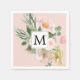 Serviette En Papier Aquarelle moderne Fleurs roses Monogrammes