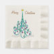 De belles serviettes avec une peinture numérique originale de Leslie Sigal Javorek d'un arbre de Noël turquoise tourbillonnant avec des ornements violets sur une Trompe L'oeil (astuce de l'oeil) illusion arrière - plan de porcelaine fine en os et plus de profondeur.