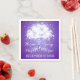 Arbre magique aux lumières scintillantes, serviette en papier mariage violet moderne avec un arbre aux lumières brillantes sur arrière - plan violet. Ce design mariage contemporain élégant et élégant est un modèle entièrement personnalisable, idéal pour une nuit d'été ou un mariage d'hiver.