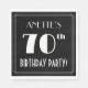Ce modèle de serviette en papier de fête des années 70 s'inspire d'un nom personnalisé, d'un look art déco complexe inspiré du numéro "70th", du message "BANTHDAY PARTY !" et d'une frontière multiligne. Il y a un arrière - plan de couleur noire par défaut, mais il peut être customisé à une couleur différente, si désiré. Des serviettes en papier à thème comme celles-ci pourraient être utilisées lors d’une fête célébrant le soixante-dixième anniversaire de quelqu’un. [~Z0000612]