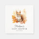 Des serviettes de baby shower à thème boisé mignonnes, illustrées d'une aquarelle d'un écureuil de bébé entouré de feuilles d'automne dans les tons orange, rouge et jaune. Personnalisez les serviettes de baby shower pour bébé écureuil avec le nom de la mère et la date du baby shower. Conçu pour coordonner avec notre collection de Baby showers d'automne pour animaux de bois mignons.