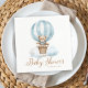 Les serviettes de Baby shower pour garçon Blue Teddy Bear présentent une adorable aquarelle illustrant un ours en peluche dans une montgolfière contre des nuages doux.