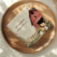 Une douce ferme rustique avec une grange rouge classique, des canards moelleux, des ballons pastel et des fleurs de printemps. Idéal pour célébrer un petit prochain avec un thème de campagne chaleureux.