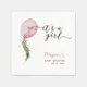 Serviette en papier baby shower à thème pour ballon rustique et moderne avec aquarelle illustrant un ballon rose avec une guirlande verte. Le texte dit "c'est une fille."