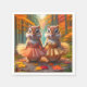 Deux tamias habillés de petits tutus glitteux se tiennent sur une souche d'arbre entourée de feuilles d'automne colorées