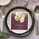 Un arrière - plan bordeaux avec des faux ballons d'or et des ballons blancs, des confettis d'or rose. Personnalisez et ajoutez un nom et un âge. Texte doré.
