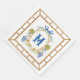Ce design chic présente un bambou avec un arc bleu entouré d'orangers dans des pots de chinoiserie. Il y a un cadre en bambou autour du bord extérieur. Vous pouvez personnaliser avec votre monogramme.