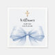 Couleur arrière - plan bleu clair. Décoré d'un grand arc bleu et d'une croix dorée. Personnalisez et ajoutez le nom et la date.