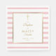 Baptême élégant à rayures roses pour bébé ou serviette en papier baptisant avec une croix d'or avec une élégante bordure en feuille d'or qui encadre vos détails spéciaux de célébration d'événement mis dans la typographie moderne. Conçu par Thisisnotme©