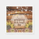 Célébrez votre journée spéciale avec ces serviettes rustiques en bois de grange avec des lampes à cordes et des tournesols.