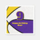 Cette serviette de basket-ball à thème pour un anniversaire de basket-ball ou une fête d'équipe présente l'image d'un basket-ball qui a alternativement des panneaux violet, blanc et or - customiser le texte en violet et or - par katz_d_zynes