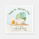 Utilisez cette serviette en papier amusante à votre St. Patrick's Day, rassemblez-vous - surtout si c'est à la maison de plage! Celui-ci est équipé d'un gnome de plage en tongs et en vert, et il tient une pinte de bière et un shamrock alors qu'il se tient dans le sable devant une planche de surf. Une Bénédiction irlandaise en dessous de lui dit : "Que vos joies soient aussi profondes que les océans, vos ennuis aussi légers que sa mousse."