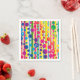 Un design audacieux de pois de polka bulle sur des bandes dans un arc-en-ciel de couleurs vives fait pour des serviettes en papier gaies avec un souhait d'anniversaire heureux subtil travaillé dans. Le message peut être customisé pour n'importe quelle occasion ou supprimé complètement en laissant le champ de texte vide.