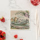 Des serviettes en papier de fête de Pâques montrant des poussins poussant à travers l'eau dans un petit bateau livrant des oeufs de Pâques enveloppés de ruban.