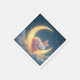 Un lapin blanc moelleux est enveloppé doucement dans une couverture rose, reposant paisiblement sur une lune de croissant brillante dans un ciel nocturne onirique. Peut être utilisé pour une douche bébé fille.