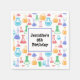 Serviettes en papier avec un motif amusant et coloré. Un scientifique de recherche vibe avec des beakers et des flacons de différentes formes et tailles dans des couleurs vives et joyeuses.