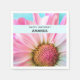 Serviettes en papier d'anniversaire avec une fleur rose et blanche vibrante. La photo de près de cette fleur enchanteresse attire vraiment votre attention. Une bande bleue pastel avec votre texte personnalisé à l'intérieur.