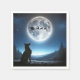 Un chien berger allemand regarde vers la pleine lune où le traîneau à Père Noël et les rennes sont silhoués contre une pleine lune brillante