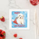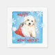 Célébrez la saison des Fêtes avec un mignon chiot Bichon Frise assis dans un chapeau de Père Noël au milieu des flocons de neige et les mots, Happy Howlidays!