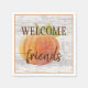 Des serviettes en papier mignonnes avec un texte de citation 'WELCOME friends' et un citrouille orange sur un arrière - plan motif vintage en planches patinées. Un décor de rêve où l'on met l'accent pour installer la table de pique-nique pour dîner ou faire la fête en venant passer des vacances à Thanksgiving. Et pour décorer la cuisine, le couloir, le salon ou la chambre familiale de votre maison de ferme style maison de campagne décoré, cabine en rondins, maison de lac rustique ou retraite confortable rivière.