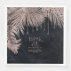 Optez pour un look éblouissant, éblouissant et glamour en utilisant les pièces de cette suite mariage comme indiqué, avec des bijoux en cascade des feuilles de palmiers incrustés de diamants ou supprimer les couches de bijoux pour un look un peu plus conservateur. Cet ensemble présente des feuilles en or rose chatoyant contre un arrière - plan bleu marine et texturé. La serviette en papier mariage montrée ici a une frontière de feuilles pétillants, un message personnel de "Merci" et les noms de la mariée et du marié et la date du mariage. Entrez facilement vos coordonnées en utilisant le modèle fourni. Affichez le lien de collection sur cette page pour voir tous les éléments correspondants dans ce bel ensemble ou recherchez ID830 pour voir d'autres options de couleur pour cette conception.