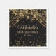 Des serviettes de papier personnalisées pour la fête d'anniversaire customisées pour le 50e anniversaire d'une femme avec des lampes à cordes dorées scintillantes et un bokeh pétillant sur un arrière - plan noir. Ce modèle est conçu pour que vous puissiez modifier n'importe quel texte, ce qui le rend parfait pour une fête célébrant n'importe quel âge. La couleur noire de l'arrière - plan est également personnalisable. Concevez vos serviettes en papier pour vos propres couleurs de fête. Contactez-moi pour obtenir de l'aide sur vos personnalisations ou pour demander des produits Zazzle correspondants ou coordonnés supplémentaires pour votre groupe.