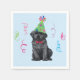 Bonjour à tous avec ce design mignon avec un chiot Black Labrador Retriever vêtu d'un casquette souriant, entouré de banderoles colorées.