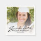 Serviettes modernes de fête de remise des diplômes avec une photo personnalisée. Remplacez facilement l'exemple d'image par une photo de votre diplômé. Le mot "Graduate" apparaît dans le script d'écriture manuscrite noir, avec le nom, l'école, et l'année de graduation ci-dessous dans la police sans serif. Une superposition en dégradé blanc aide à faire apparaître le texte noir ! Idéal pour obtenir un diplôme d'études secondaires ou collégiales.