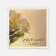 Les jolies serviettes en papier de mariage de printemps de Double Daffodils blanc seront un bel accent pour votre mariage de mars, avril ou mai, cérémonie de mariage réception ou fête de jardin douche nuptiale. Personnalisez-les avec le nom de la mariée et du marié et la date de l'événement. Ces élégantes serviettes jetables personnalisées présentent une photographie florale numériquement peinte de fleurs blanches à double jonquille sur la tige avec un arrière - plan de couleur crème blanche cassée.