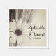 Le chic rustique blé séché et Daisy Country Farm Papier Mariage Napkins peut être personnalisé avec les noms de la mariée et mariée et date pour utilisation à votre ranch rural décontracté thème grange douche nuptiale ou mariage cocktail et réception. Ces charmants serviettes jetables personnalisées présentent une photo florale couleur sépia noir et blanc pittoresque de grains de blé séché avec une fleur de marguerite blanche fleurie.