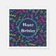 Retournez aux années 80 et 90 avec serviette de soirée personnalisée avec confettis et formes rétro abstraites conçus dans le style Memphis en rouge, jaune, bleu et vert sur arrière - plan bleu foncé. Vous pouvez modifier le message sur la conception à l'aide du bouton Personnaliser